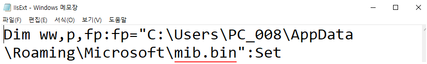 \\Miscosoft\\Windows\\Start Menu\\Programs\\StartUp\\IIsExt.vbs 파일이다.