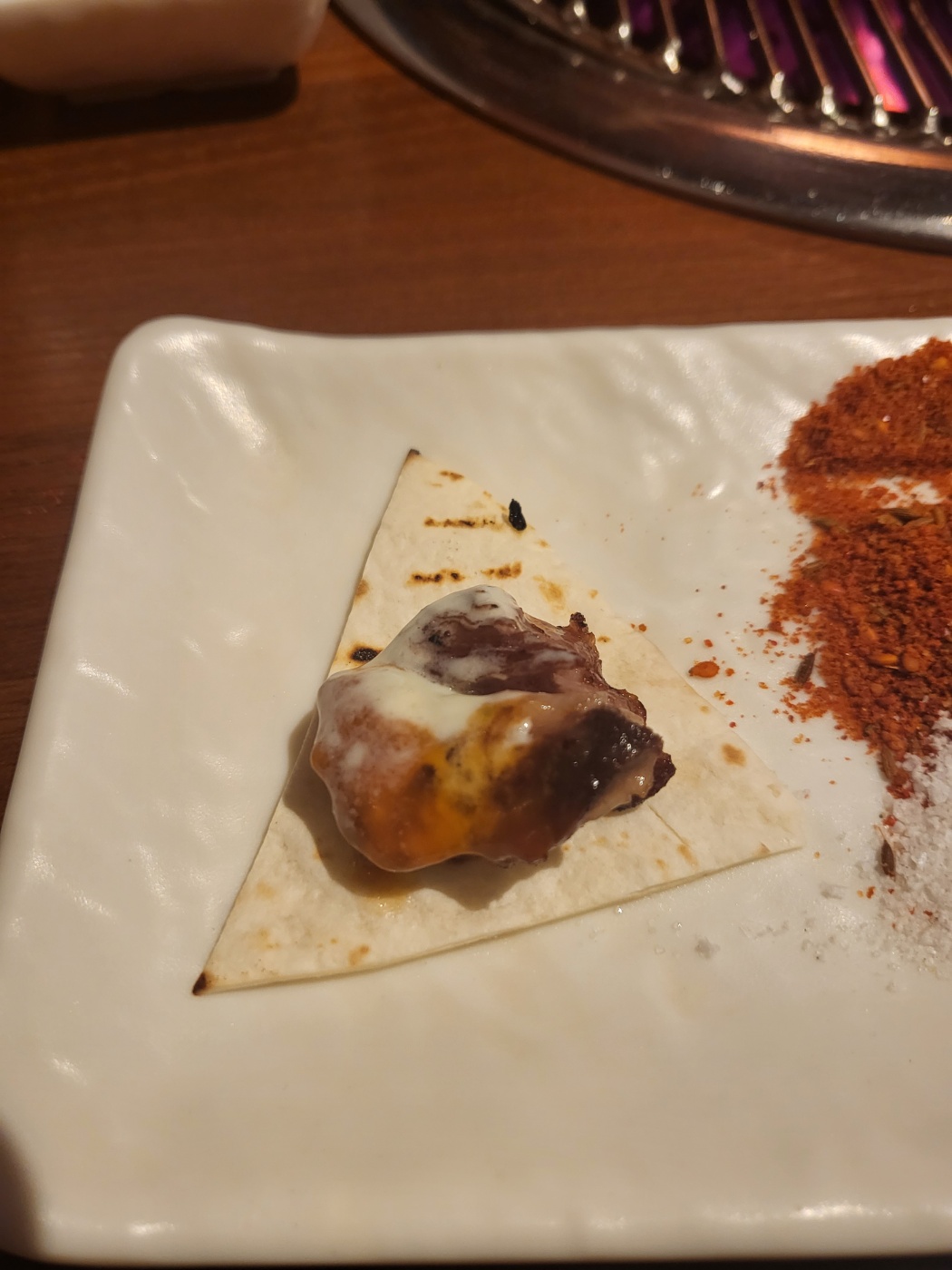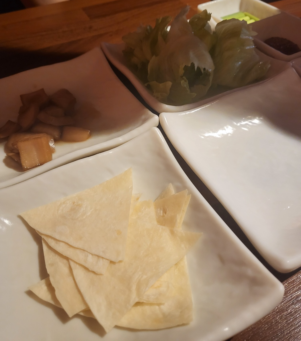 받은 또띠아도 불에 구워서 양갈비와 함께