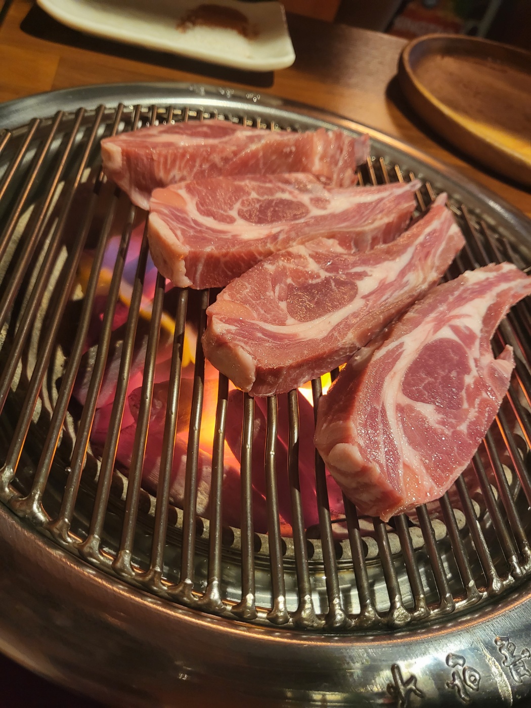 양갈비 살 부분 다먹고 뼈 부분은 직접 구워서 쪼끔 뜯어먹었다.