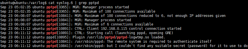 cat syslog.6 | grep pptpd 로
