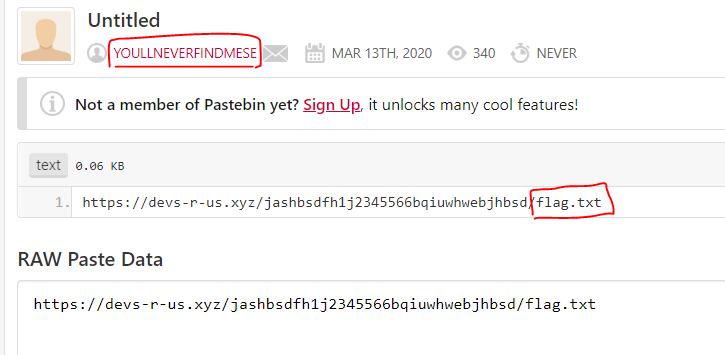 youllneverfindmese 라는 계정으로 올린 flag.txt 파일이 있는것을 확인했다.