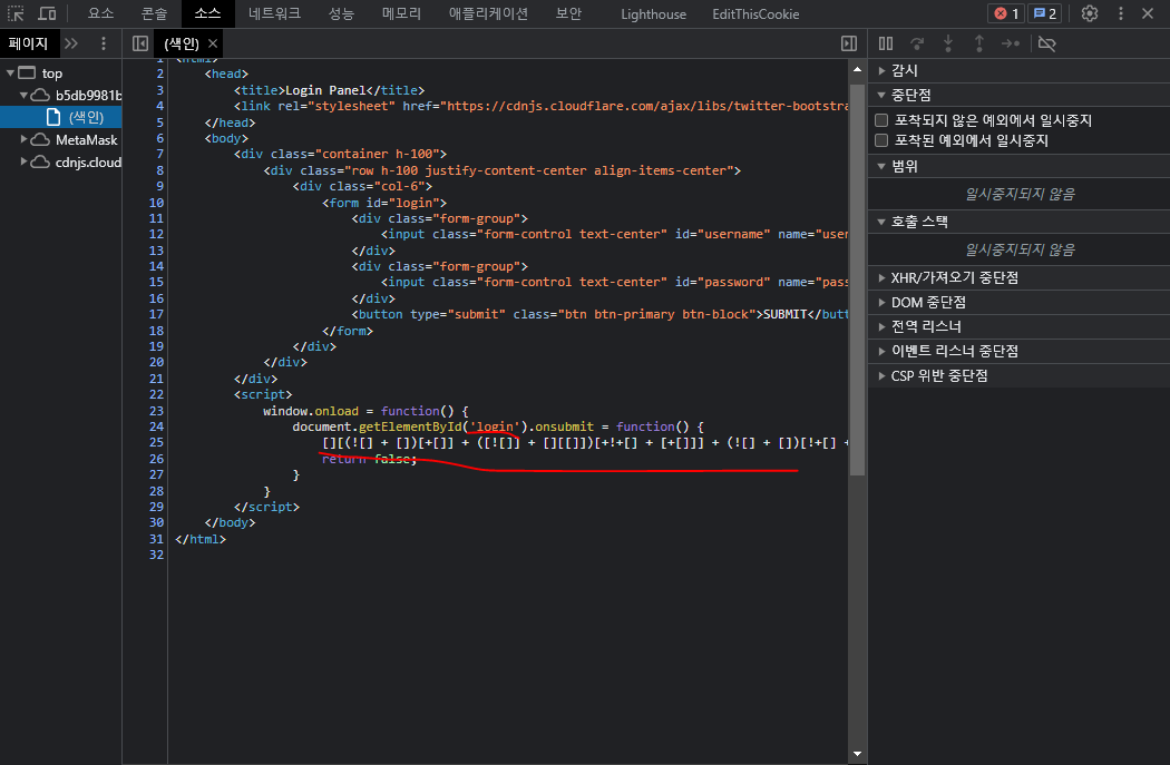 뭔가 난독화 되어있는 부분이 보인다.