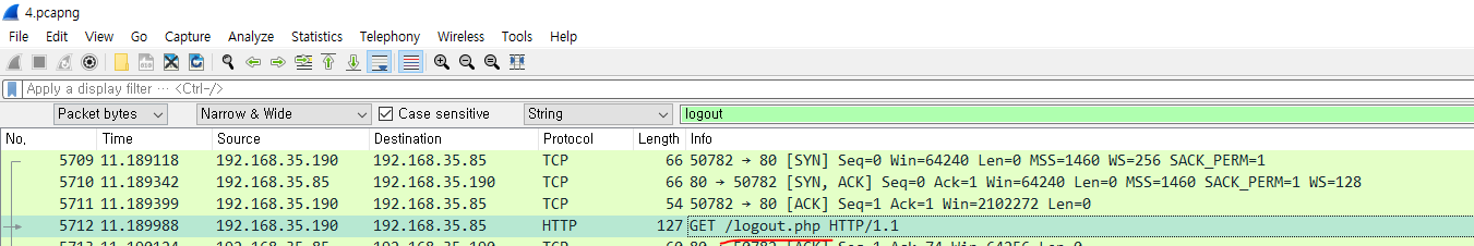 http://192.168.35.85/logout.php 로 접속하는것을 볼 수 있다.