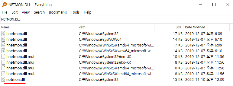 netmon.dll 이 System32 폴더 안에 있음을 확인했고