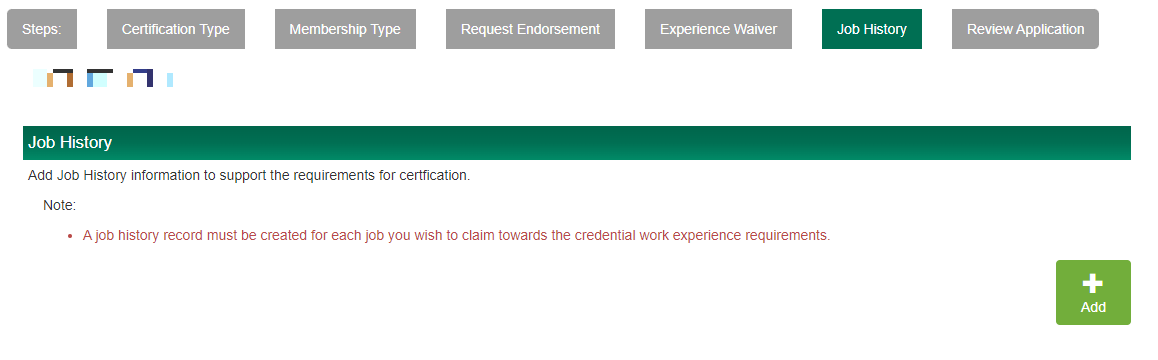 진한색으로 되어있는 Certification Application 버튼을 누르면