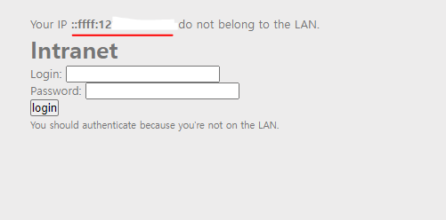 사내 인트라넷을 쓰기 위해서 사설 ip 대역으로 접근제한을 걸어놨다는 내용이다.