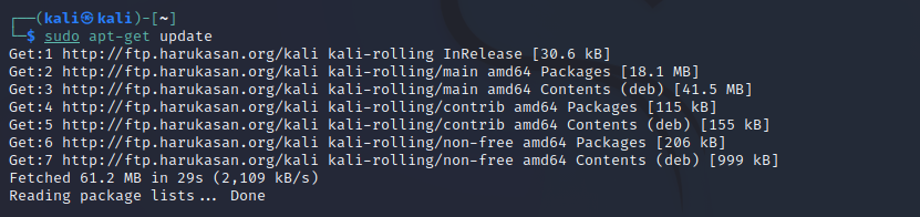 sudo 명령어 사용에 따른 비밀번호를 물어본다면 kali 라고 입력하면 된다.