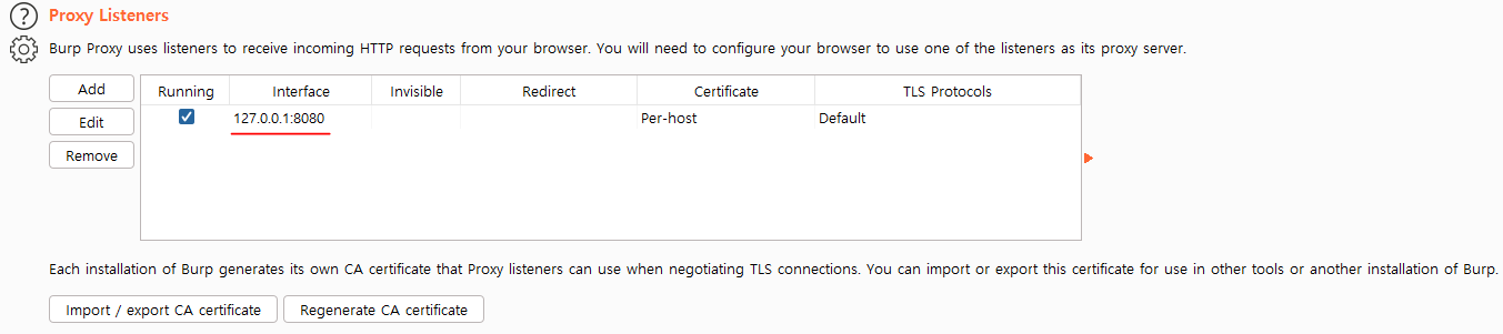 Proxy Listeners 라는 메뉴에서