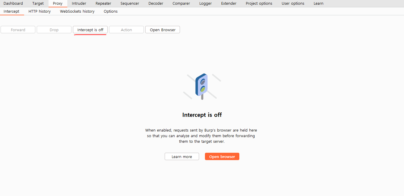 Intercept is on 버튼을 눌러서 off 로 바꿔주면 된다.
