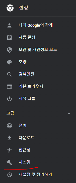 메뉴에서 고급 - 시스템으로 들어가준다.