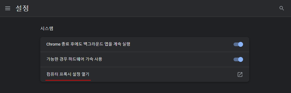 컴퓨터 프록시 설정 열기를 클릭해준다.