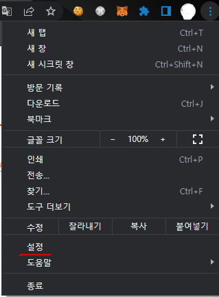 주소창 옆에있는 쩜쩜쩜 버튼을 눌러서