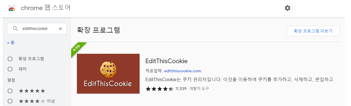 https://chrome.google.com/webstore/search/editthiscookie?hl=ko 이곳에서 설치할 수 있다.